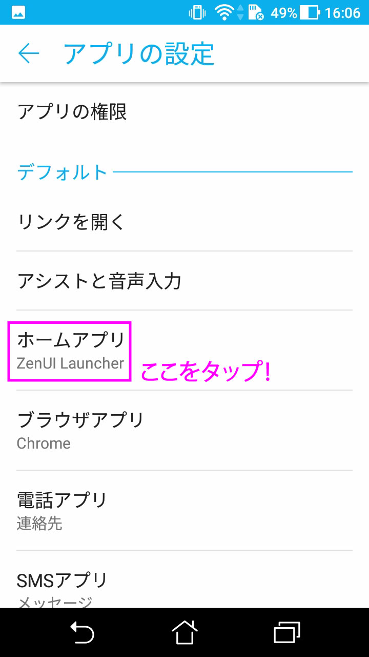 (Android6.0の時はこのような設定画面でした。)