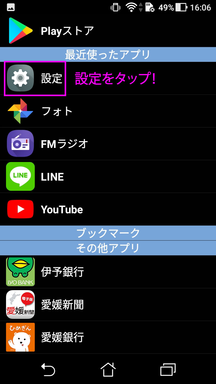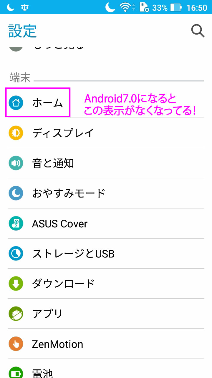 (Android7.0の設定画面がこちら)