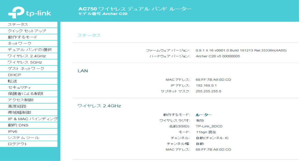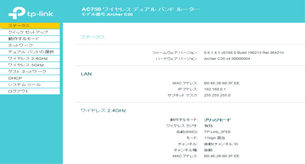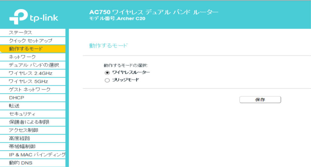 TP-LINK Archer C20 ver4.0 4.1 5.0 動作モード