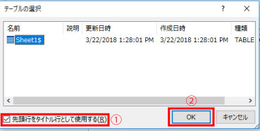 ※先頭行をタイトル行として使用するにチェックいれOKをクリック