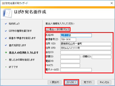 差出人の情報を入力して次へ