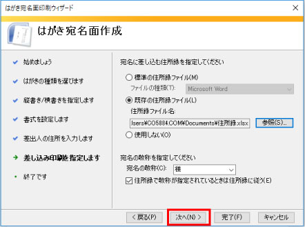 既存の住所録ファイルをクリックし、参照をクリック