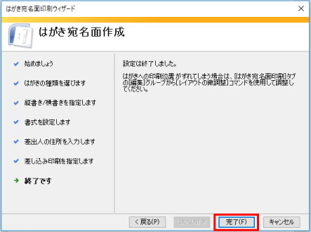 完了をクリック